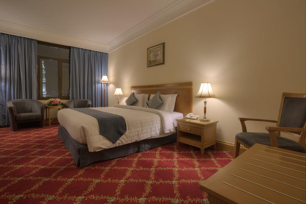 تتميز الغُرف المُكيّفة في فندق الحرم بكونها فسيحة ومزينة بألوان دافئة. وتحتوي على جهاز تلفزيون مع قنوات فضائية وميني بار، وتضم بعض الغرف غرفة نوم منفصلة ومنطقة معيشة ومطبخ صغير.